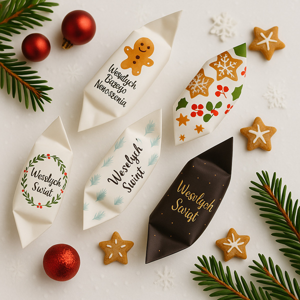 Dla Twojej wygody przygotowaliśmy gotowe szablony bożonarodzeniowe. Wybierz numer wzoru, dodaj logotyp, a my dopracujemy każdy detal tak, aby Twoje słodkie prezenty zachwyciły obdarowanych i budowały pozytywne skojarzenia z Twoją marką